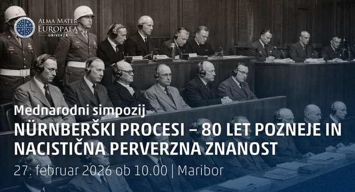Vljudno vabljeni na mednarodni znanstveni simpozij z naslovom Nürnberški procesi – 80 let pozneje in nacistična perverzna znanost (Nuremberg Trials 80 Years Later and Nazi 'Perverted Science'), ki bo potekal v petek, 27. februarja 2026, med 10. in 14. uro, v Veliki predavalnici Univerze Alma Mater Europaea (Slovenska 17, Maribor).