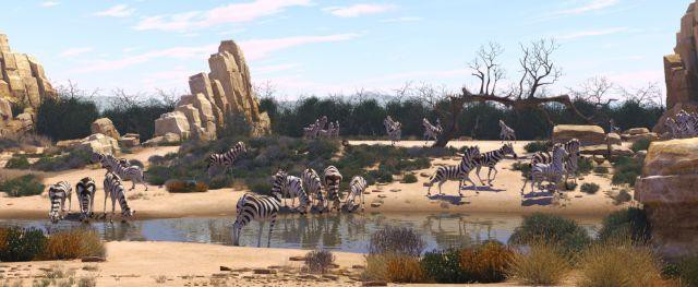 Fango se je rodil slep na eno oko in družina ga je še kot mladička zavrgla; hudo je vraževeren in je že vse življenje čakal na zebro s polovico prog – Khumba o tem seveda ne ve nič – zaradi katere naj bi po starodavni legendi postal najbolj vpliven lovec, kar jih je kdaj bilo. Potem ko komaj uide oportunističnemu divjemu psu Skalku (Steve Buscemi; v slovenski sinhronizaciji Emir Jušič), se Khumba spajdaši z nenavadno dvojico: zajetna in pretirano zaščitniška divja zver Mama Gnu (Loretta Devine; v slovenski sinhronizaciji Karin Komljanec) in negotovi noj Beno (Richard E. Grant; v slovenski sinhronizaciji Aleksander Golja), se Khumbi pridružita v iskanju napajališča, pri tem pa naletijo na pisano in odštekano druščino likov.