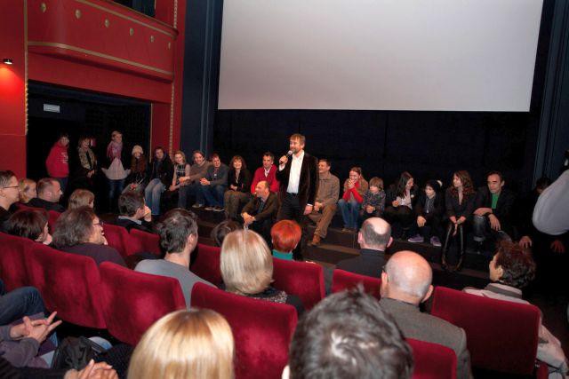 Pred projekcijo filma so navzoče pozdravili Stojan Pelko (tretja fotografija), državni sekretar na Ministrstvu za kulturo, Nina Peče, direktorica Kinodvora, ter režiser in scenarist Janez Burger (druga fotografija). Film o vojni brez besed je nedavno na filmskih festivalih v Rotterdamu in Göteborgu doživel topel sprejem občinstva ter zbudil zanimanje mednarodne filmske javnosti, še v tem mesecu pa bo predstavljen na Evropskem filmskem marketu v Berlinu in filmskemu festivalu v Dublinu.