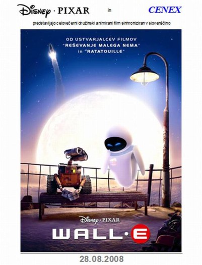 Disney - Pixar & Cenex predstavljajo celovečerni družinski animirani film Wall - E, sinhroniziran v slovenščino
