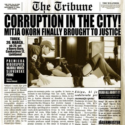 Kmalu pa ga bo moč videti tudi na televiziji, kjer si boste lahko podrobno razjasnili vso zgodbo, ki bazira na Nini kot osebi, kakršna dejansko je. Dekle, ki živi za škandale in drugače sploh ne zna funkcionirati. Kot dvolični županji v namišljenem svetu, kjer je temačno vzdušje in kjer živijo še bolj temačni ljudje, ji ne uspe dolgo skrivati svojega pravega obraza, saj jo novinarji hitro razkrinkajo. Skrito življenje, razvrat, umazan denar in korupcija je le nekaj dejavnikov, ki spremljajo zgodbo spota, katerega je Mitja začel snemati že po novem letu. Pokukajte v mesto greha in postanite del mračnih sil tudi vi.