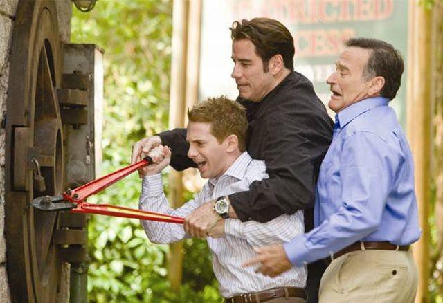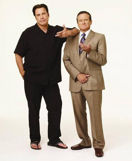 John Travolta pozna Robina Williamsa že trideset let in sta tako rekoč stara prijatelja. Najbolj zabavna stvar pri vsem skupaj pa je bila vloga Kelly Preston, v resničnem življenju sopotnice Johna Travolte. Tu pa igra žensko, v katero je zaljubljen Robin Williams. ''Kul stvar. Vicki je krasna osebnost. Malce zategnjena in obenem prismuknjena, kar je bilo zame zelo smešno. Poleg tega se vame zaljubi Williams, kar je posebne vrste izkušnja. Noro smo se zabavali,'' pove Kelly Preston. Seveda pa sta dva tako izjemna komika, kakršna sta Williams in Travolta, lahko adut za odlično komedijo ali pa vozovnica za pekel. Izkazalo se je prvo. Po načinu igre sta popolnoma različna, trdi producent Panay, toda na snemanju sta ti dve drugačni dimenziji dali tretjo, ki je bila nekaj novega in fantastičnega. John je primer kontroliranega improviziranja, vedno najde šalo znotraj šale, medtem ko je Williams prava ''strojnica''. Brez prestanka je streljal eno smešnico za drugo. Skupaj pa sta bila smešna do onemoglosti.''