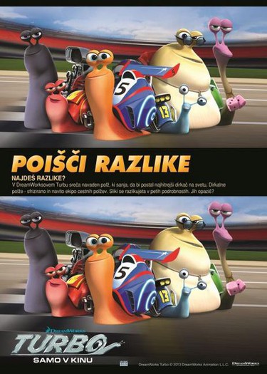 Ustvarjalci trilogije Madagaskar in Kung fu pande predstavljajo zgodbo o polžu Turbu, ki ne želi več vsak dan zgolj počasi iskati zrelih paradižnikov, temveč sanja, da bo nekoč postal dirkač. Režiser slovenske sinhronizacije je Jernej Kuntner. Glasove pa so glavnim likom posodili: Aljaž Jovanovič, Jernej Kuntner, Blaž Setnikar, Kristijan Ostanek, Roman Končar, Vladimir Kosovič, Igor Potočnik, Igor Štamulak, Tina Gorenjak, Lija Pečnikar, Primož Pirnat, Jure Lavrin, Sebastjan Starič.