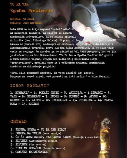 komentarji Mitje Okorna o spotu in napovedniku. DVD je izšel pri Multimedia records, v decembru pa ga lahko dobite v Tuševi akciji samo za 2.500 sit, če si greste ogledat kateri koli film v njihovem kinu v Celju ali v Novem Mestu. Za vse, ki ne marate prazničnih gneč pa lahko DVD naročite preko spletne strani http://www.bof.si/product.cp2?guid=715082E1-C6BC-88C6-CCF7-8F49F41E6BED, več informacij o samem dvd-ju