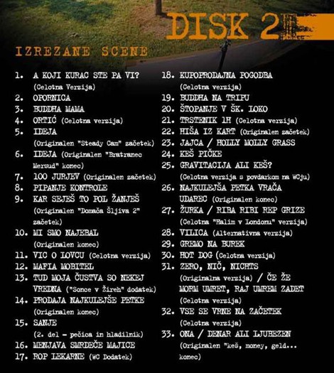 Na DVD-ju poleg filma najdete tudi 50 minutni dokumentarec o snemanju filma, ki je nastal v režiji Jureta Matjažiča. Ustvarjalci pa so poskrbeli še za dodatni dve uri in pol smeha: 60 minut izrezanih scen iz filma, 30 min ostalih smešnih in zanimivih scen, 45 minut fotografij, videospot skupine Kocka in vsi filmski napovedniki. Dodatek k vsemu temu pa je 6 ur komentarjev, ki so jih posneli igralci in režiser. Komentirali so film in izrezane scene. Priloženi pa so tudi kratki ultra-smešni