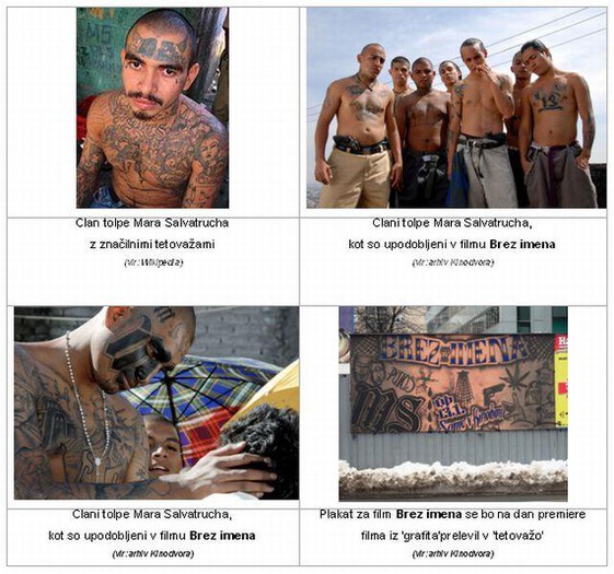 Danes, v sredo, 13. januarja, bodo na vse tri plakate dodali oči (kolažno izrezane fotografije očes), ki bodo plakate iz abstraktne, z grafiti pokrite površine prelevile v kožo obraza pripadnika tolpe Mara Salvatrucha. Grafiti bodo na dan premiere filma tako postali tetovirana zgodba filma na obrazu.