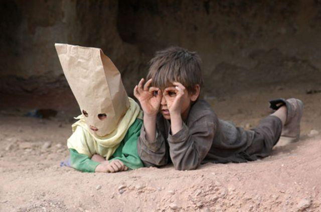 Zdaj se otroci te dežele igrajo tako, da drug na drugega streljajo z lesenim orožjem. V igri uprizarjajo kamenjanje v katerem žrtve igrajo majhne punčke in podtikajo namišljene mine. Kako se bodo ti otroci, ki se igrajo vojno, igrali med seboj in z prihodnostjo človeštva, ko odrastejo?«
