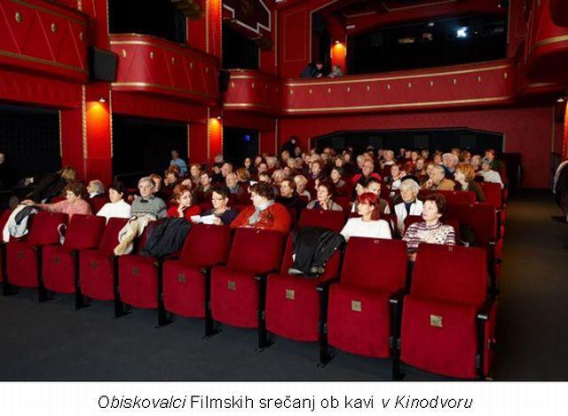 V okviru iztekajoče se sezone abonmaja za poznejša leta Filmska srečanja ob kavi se je od 16. decembra 2009 do te srede zvrstilo skupaj 10 dogodkov. Srečanja potekajo ob sredah ob 10. uri dopoldne. Vsakega sestavlja dopoldanski ogled posebej za zrelejše občinstvo izbranega filma in nato, ob brezplačni kavi ali čaju, pogovor v Kinodvorovi Kavarni – z zanimivimi gosti, ki gledalcem pomagajo čim bolj prodreti v tematiko pravkar videnega filma.