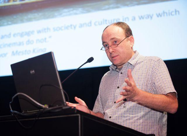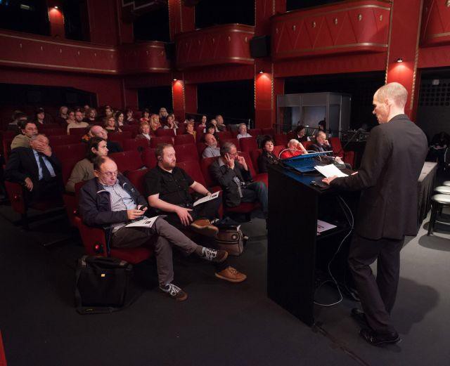 Profesor Ian Christie, filmski zgodovinar, kurator ter nekdanji predsednik združenja Europa Cinemas, je v svojem prvem prispevku poudaril, da film danes ni več v ekskluzivni domeni kinematografov, pač pa je mesto kina danes povsod: na TV, na prenosnih računalnikih, na letalih, pametnih telefonih … Po podatkih britanskih raziskav se od petih milijard letnih ogledov filma le šest odstotkov teh zgodi v kinodvoranah. »Kinodvorane so pomembne v vrednostni verigi, ampak veliko manj v totaliteti gledanja filmov.« Trenutno krizo kino prikazovalcev (kinematografov) je postavil v zgodovinsko perspektivo in pokazal, kako so bile kinodvorane vedno nek »raznovrsten« prostor. Opozoril je, da gremo danes skozi »obdobje hibridnosti, v katerem se tradicionalni načini izvedbe kinematografskih dvoran prilagajajo celi paleti tradicionalnih pričakovanj.« Christie nas je »prisilil, »da se spomnimo tradicionalne vloge kinematografa kot prostora novosti. /../ Zdaj pa, zahvaljujoč digitizaciji, ima kino celo paleto možnosti«. Zaključil je z mislijo, da »kinodvorana prihodnosti potrebuje čas, da si pazljivo izbori svoje mesto med preteklostjo in sedanjostjo, kot tudi med globalnim in lokalnim. Ampak nobenega dvoma ni, da je potencial kinodvoran presenetljiv – vsekakor mnogo boljši v primerjavi z grozovitimi osemdesetimi, ko se je zdelo, da bodo izginile.«