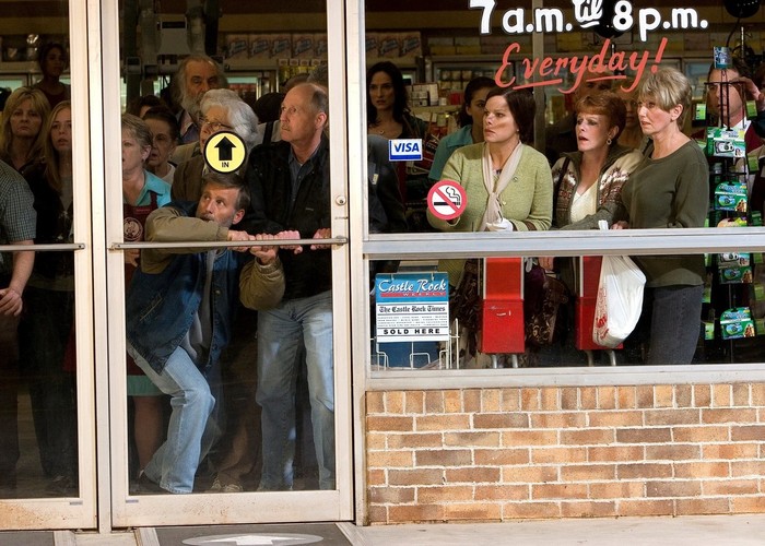 Po uničujoči nevihti se nad mestecem v Mainu pojavi gost oblak megle. Umetnik David Drayton s 5-letnim sinom ter ostalimi prebivalci mesta ostane ujet v živilski trgovini. Kmalu spoznajo, da se v megli skrivajo smrtonosne grozote, ki ogrožajo njihova življenja.