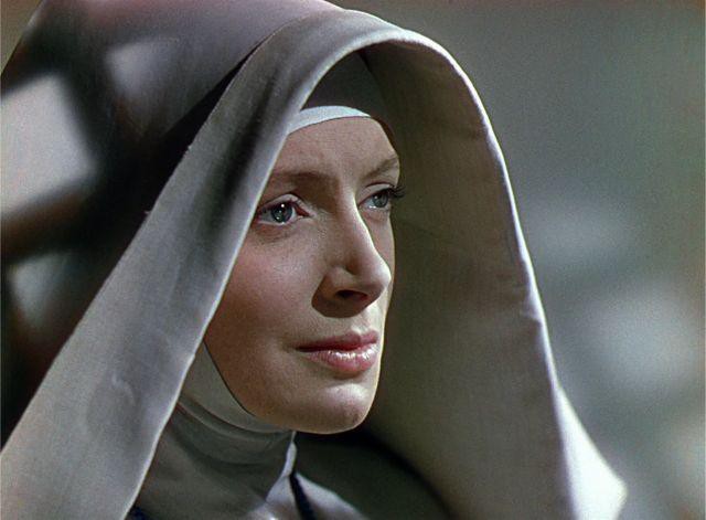 Če Powell in Pressburger v adaptaciji romana precej zvesto sledita izvornemu besedilu, vanj vendarle vneseta pomembne spremembe. V ključnem prizoru, ki nastopi tik pred vrhuncem, se erotično blazna Ruth, potem ko je zapustila svoj verski red (ta v filmu zahteva vsakoletno obnovitev zaobljub), pojavi na pragu Deanove hiše z eno samo mislijo – meseno pregreho. V knjigi je tu še vedno odeta v toga nunska oblačila, v filmu pa eden najbolj silovitih momentov nastopi ravno tedaj, ko jo Clodagh zasači v vinsko rdeči obleki, naličeno in počesano, kot bi se odpravljala v razburljivo noč na Piccadillyju.