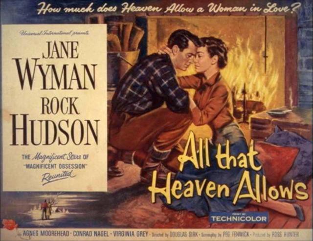 Na prvi pogled je Vse, kar dovoli nebo tipična sirkovska družinska melodrama iz petdesetih let. Umeščena je v izmišljeno majhno provincialno mesto v Novi Angliji in pripoveduje zgodbo o osamljeni štiridesetletni vdovi (Jane Wyman), ki hrepeni po sreči in se zaljubi v svojega veliko mlajšega vrtnarja (Rock Hudson), nato pa naleti na popolno zavračanje okoliške malomeščanske skupnosti (vključno s svojimi odraslimi otroki), ki noče sprejeti njenega »nekonvencionalnega« odnosa. Potrebna je precej neverjetno tempirana bizarna nesreča, da spet združi »sijajni zvezdi Čudovite strasti« (kot je poster iz tega obdobja obljubljal gledalcem). Živa slika v interierju s Hudsonom kot na posteljo priklenjenim imobiliziranim pacientom in Wymanovo kot njegovo skrbno negovalko na ozadju velikega okna s pogledom na kičasto snežno pokrajino z mimoidočimi srnami nudi značilen dvoumen sirkovski srečni konec. »Vsi moji konci, celo srečni, so pesimistični /.../ Kot je rekel Brecht: ko pade zavesa, morate razmišljati naprej. /.../ V tragediji se življenje vedno konča. S svojo smrtjo je junak hkrati rešen življenjskih težav. V melodrami živi naprej – v nesrečnem srečnem koncu.«
