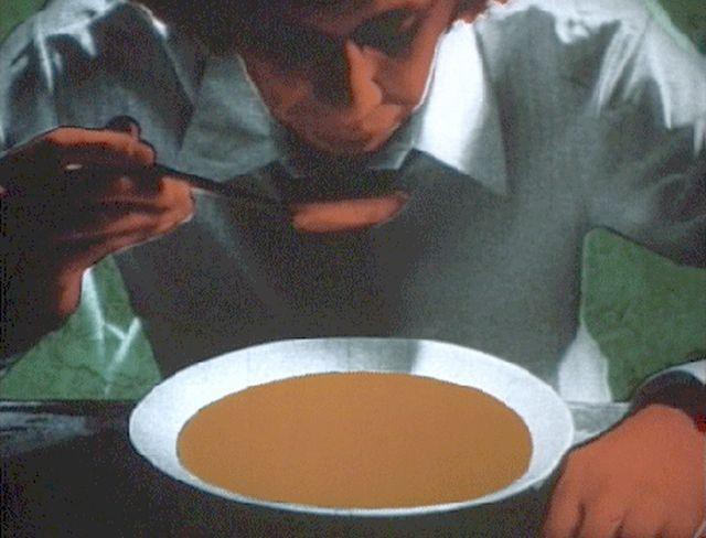 Enigmatična koreografija vsakdanjih ritualov in ponavljajočih se fenomenov razkriva prepoznavno poetiko nesmisla in absurda, medtem ko se filmska substanca brezsramno razgalja gledalčevemu pogledu. Juho (1974) in Praznik (1976) sestavljajo preprosti pripovedni fragmenti, ki črpajo iz socioloških in etnoloških spoznanj. Juha, ki jo Rybczyński označuje za svoj najbolj avtobiografski film, je intimni dnevnik poželenja in dolgočasja, ki ga lahko beremo kot dokument Zbigovega stanja duha, kot ga je zaznamovala mračna atmosfera 70-ih v Lodžu. Mlad par, ujet v klavstrofobičnem stanovanju in prisilnem ponavljanju rutinskih sekvenc – pa čeprav podzavestno oba hrepenita po izhodu in pobegu. Od uvodnega kadra podirajoče se zgradbe, prek psihedeličnih vizij lobanje, ki jo iztiskajo orjaška usta, brezna oceana za stanovanjskimi vrati ali požrešne vilice, ki nabada in golta mladeničevo lice, do dekletovega končnega padca v prepad, logika nočne more ruši in razveljavlja logiko časa. Večplastna obdelava igranih in animiranih posnetkov ustvarja brezkončen tokokrog dogodkov in gibov. Avtomatizem vedenja protagonistov še podkrepi formalna zvijača ponavljanja in prevrtavanja traku naprej in nazaj. Namesto klasične zaključne špice se ORWO trak raztrga – filmski material postane viden in gledalec se znajde v stanju kognitivne konfuzije.