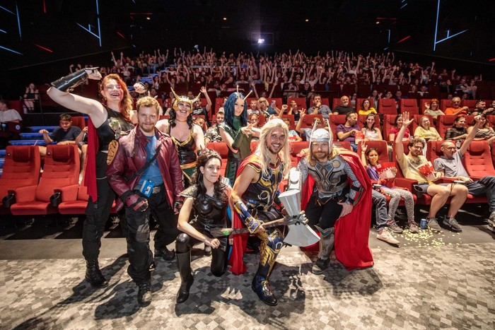 Vrhunska zvezdniška ekipa je poleg Chrisa Hemswortha sestavljena tudi iz igralcev Natalie Portman, Christian Bale, Tessa Thompson, Russell Crowe, Taika Waitit, Chris Pratt, Karen Gillan, Pom Klementieff in drugi. Predpremierno smo si v Sloveniji Marvelov spektakel ogledali na velikih platnih večjih kinematografov, v Cineplexxu Ljubljana, v Supernovi Rudnik pa se je v okviru Večera superjunakov odvila tudi posebna premiera filma, ki so si ga prvi gledalci lahko ogledali v Real 3D Dolby Atmos formatu. Večer superjunakov je popestrila ekipa cosplayjerjev Na meji nevidnega in tako so se nam je na premieri pridružili čisto pravi liki Thora, Valkyrie, Lady Loki, Mantis in Star Lord.