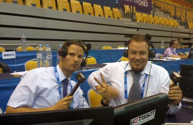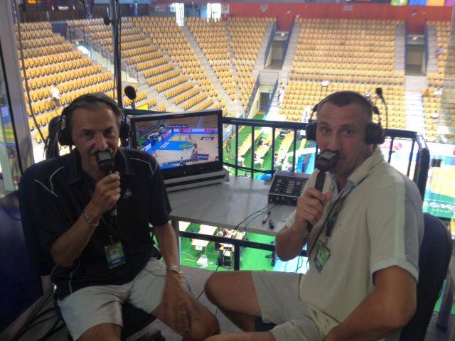 3. Komentator Miha Žibrat in strokovni komentator Roman Horvat.