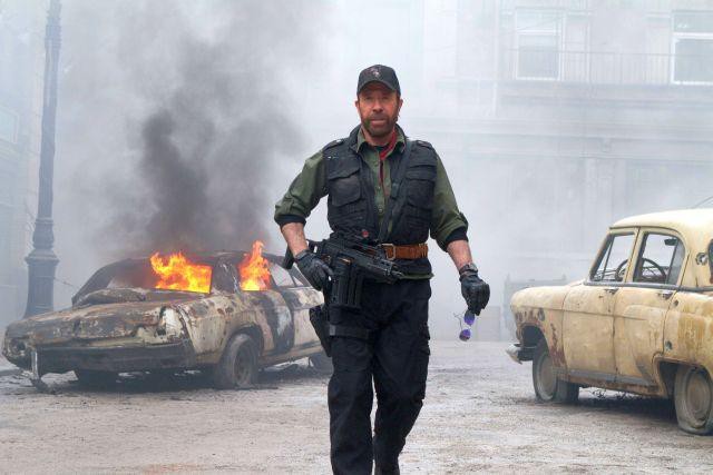 V prvem filmu so gledalci skupaj na platnu prvikrat videli tri največje akcijske zvezdnike preteklih treh desetletij – Stalloneja Brucea Willisa in Arnolda Schwarzeneggerja; vlogi slednjih sta v drugem delu precej razširjena. »Moja dobra frenda,« kot ju označi Stallone, sta spet g. Church in Trench – in pri tem je Schwarzenegger svoje delo opravil pičel teden dni pred začetkom snemanja svojega novega filma Last Stand. Legenda borilnih veščin in igralec Chuck Norris se vse-zvezdniški zasedbi pridružuje kot upokojeni vojaški operativec Booker, ki kolegom priskoči na pomoč: »Chuck se je sicer upokojil, kar se tiče filmov,« pravi Stallone. »Dolgo je trajalo, da smo ga prepričali. Zanese se zgolj na scenarije in hotel je, da zadeva ni prehudo nasilna, ker bi to pretreslo njegove privržence. Ko je uvidel, da gre bolj za akcijsko pustolovski scenarij in ne silno prelivanje krvi, je le pristal.«