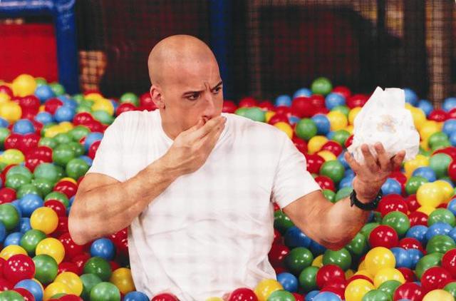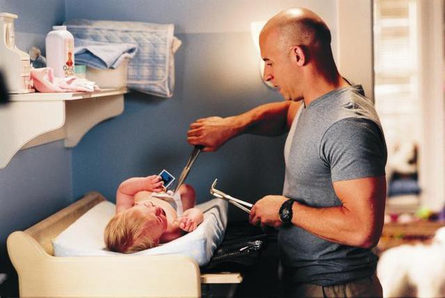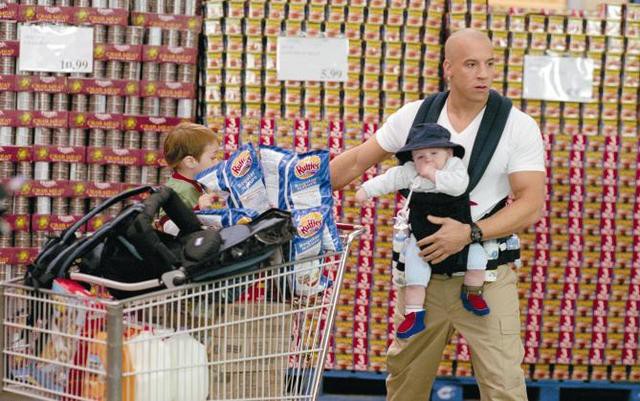 tega. Če je običajno igral temačne, stoične jeklene junake, je tokrat dobil priložnost, da med snemanjem igra video igrice, meče v zrak dojenčke in jih spravlja v smeh, lovi se z navihanim triletnikom. " Zdelo se mi je kot globok vdih svežega zraka po vsem, kar sem doslej počel," zatrjuje Vin Diesel. Drugi so malček drugačnega mnenja. "Hranjenje otrok, menjanje plenic, skrb za to, da so napisane domače naloge, brisanje dojenčkovih izbljuvkov... Snemanje redkih akcijskih prizorov v tem filmu se