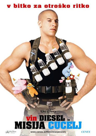 drznih, adrenalinsko nabitih situacij v svet... varušk. Rezultat mešanja situacijske, z otroškimi pleničkami in cucljem začinjene komedije, zaznamovane z Dieslovo zaščitno znamko ukrepanja z golimi pestmi, je družinska pustolovska komedija o vztrajnem, neuklonljivem, železne vojaške discipline vajenem bojevniku, ki v družini neobvladljivih otrok naleti na tiste, ki so mu kos in odkrije celo svoje srce. V MISIJI: CUCELJ Diesel na novo določa pojem akcijskega junaka in se prvič podaja v