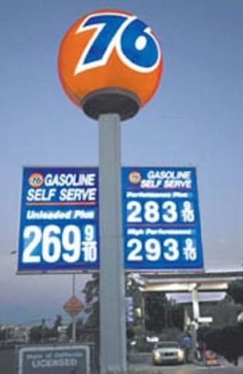 Davnega leta 1955 je dizajner Ray Pedersen izdelal okrogel znak s številko 76, ki je po začetnem šoku postal zaščitni znak verige bencinskih črpalk Union 76. Ko so korporacijo predali novemu lastniku, teksaškemu ConocoPhillipsu, so krogle, ki so bile simbol zahodnega dela ZDA in zvezde marsikaterega filma (eno izmed njih poruši tudi tiranozaver v 'Jurskem parku 2'), začeli zamenjevati pravokotni znaki.