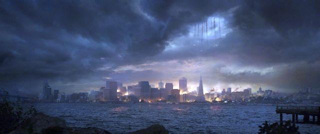 - 360 stopinj se razteza obris San Francisca iz več zornih kotov, kot so ga ustvarili tehniki za vizualne učinke in ga za zaključno bitko v filmu združili v 3D ozadje