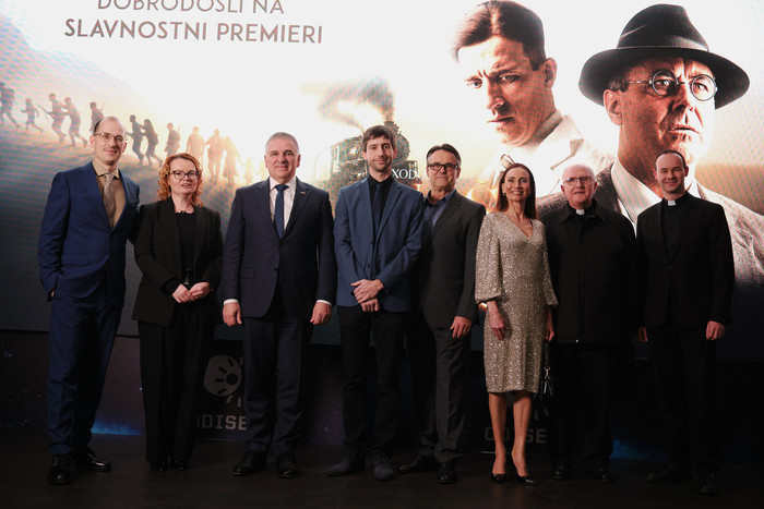 18. 2. 2026 - Včeraj, 17. februarja, je v Odiseji Ljubljana potekala ekskluzivna premiera celovečernega filma EXODUS 1945: NAŠA KRI v produkciji Studia Siposh, ki skozi oči dveh predanih in pogumnih zdravnikov, dr. Valentina Meršola in dr. Janeza Janeža, osvetljuje resnične intimne usode, ki so bile desetletja sistematično potisnjene v senco zgodovine. Polne premiere so se udeležili tudi številni znani obrazi. Dvorana je kipela od čustev in navdušenja nad vrhunsko produkcijo ter zgodbo, ki v ospredje postavlja človeka. Zgodovinski film presega meje klasičnega kinematografskega izdelka in postaja prostor za predelavo kolektivne travme, ob tem pa se poklanja neomajni humanitarni drži izjemnih posameznikov. Od 20. februarja naprej bo film na ogled v vseh kinematografih skupine Cineplexx, v Odiseji Ljubljana, v kinu Maribox in v vseh kinih Art kino mreže.
