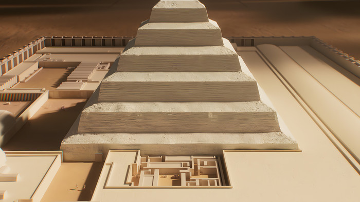 vendar jo je lahko uresničil le s pomočjo svoje desne roke Imhotepa, ki je bil duhovnik in arhitekt, nekakšen Da Vinci svojega časa. Njegova zamisel je bila zgraditi kamnito piramido – prvi spomenik na svetu iz tega materiala, ki stoji še danes in ki je služil kot zgled generacijam faraonov.