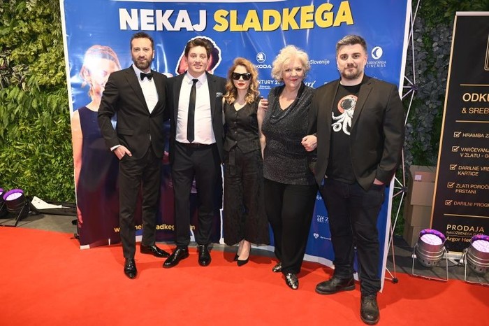 V teh dneh je celovečerni prvenec režiserja Tina Vodopivca Nekaj sladkega doživel svojo prvo premiero. Na gali premieri v Cineplexxu Ljubljana so se po rdeči preprogi sprehodili ustvarjalci in igralska ekipa – režiser in scenarist Tin Vodopivec, scenaristka in avtorica glasbe za komedijo Urška Majdič, glavna igralca Saško Kocev in Jelena Jovanova, ter igralci Ula Furlan, Tina Gorenjak, Nik Škrlec, Luka Korenčič, Oriana Girotto, Ana Ribič, Ranko Babić, Sašo Đukić, Zinaida Dedakin, Nikola Silić in drugi ustvarjalci komedije, ki na zabaven način zagrize v aktualno temo pretvarjanja v svetu marketinga. Na premieri so ustvarjalci in povabljeni nazdravili s penino Sanctum in rakijo Južni Vetar ter se sladkali s slaščicami Zebra in čokoladkami Goldstore, film pa je gledalce pošteno nasmejal in zabaval.