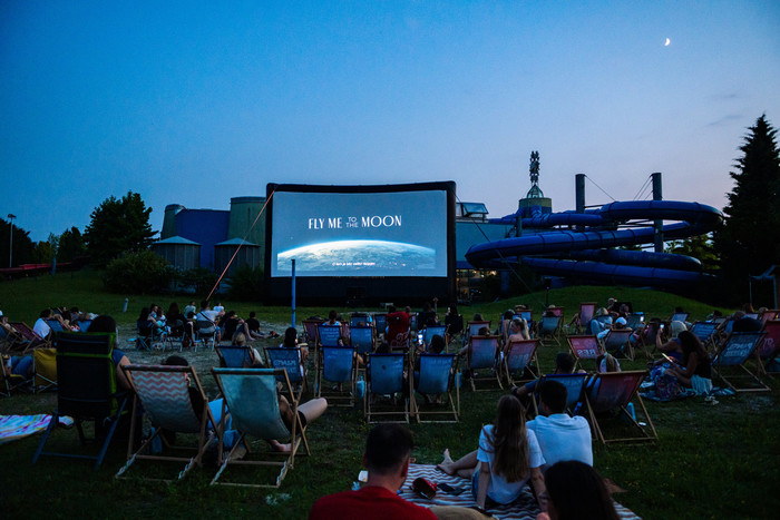 V teh dneh se je v Vodnem mestu Atlantis zgodila PIKNIK KINO premiera filma Pelji me na Luno z Channingom Tatumom in Scarlett Johansson v glavnih vlogah. Pred filmsko projekcijo je Kino Bežigrad obiskovalce ogreval z glasbo, praktičnimi darilci in umetniško delavnico, kjer so lahko z vodenimi barvami naslikali katerega izmed luninih motivov. Iz gostinske prikolice je zadišalo po sveži pokovki in slastnih burgerjih, ki so se odlično podali zraven hladnega piva ali osvežujočega gin tonica. Ko je padel mrak in je tako na nebo kot tudi na platno padla luna, so obiskovalci zasedli svoje ležalnike in se predali čisto sveži filmski zgodbi.