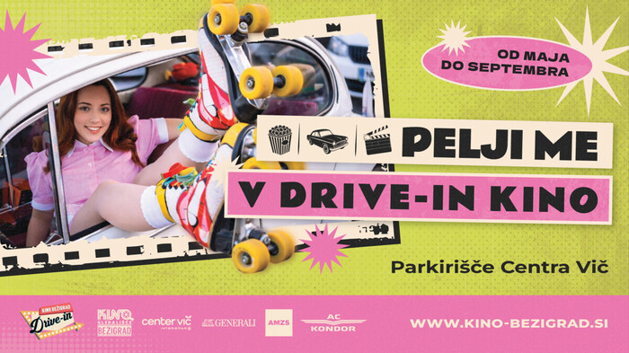 22. 4. 2026 - Spet je čas, da ujamete trenutek med dnevom in nočjo in se zapeljete v DRIVE-IN KINO na parkirišču Centra Vič! Ker tako se filme gleda spomladi – da avto postane vaš mali kino. DRIVE-IN KINO BEŽIGRAD že deveto leto zapored vsako pomlad in poletje združuje ljubitelje filma in edinstvenega kina pod milim nebom.