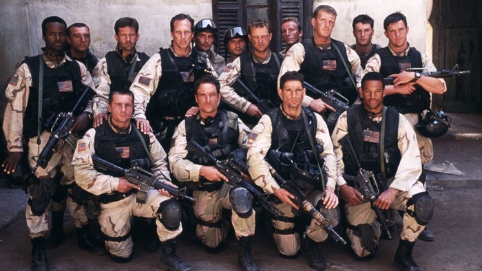 3. oktobra 1993 pošljejo elitno ekipo 'Delta Force', ki šteje preko 100 vojakov, v somalijski Mogadiš. V krajih, kjer divja državljanska vojna, naj bi ugrabili dva poročnika somalijskega vojaškega lorda Mohameda Farraha Aidida. Ko sovražne sile sestrelijo dva helikopterja misije Črni Jastreb, Američani ostanejo ujeti in obkoljeni na območju. Spopad, ki sledi, je neusmiljena 15-urna preizkušnja in najdaljša kopenska bitka po vietnamski vojni, v kateri so bili udeleženi ameriški vojaki.