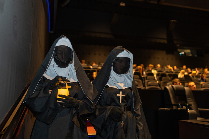 Sinočnja premiera filma Nuna II (The Nun 2, 2023), je poskrbela za uvod v odlično jesensko bero grozljivk, ki bo vrhunec tudi letos doživela v oktobru. Ljubitelji grozljivk so z ogledom nadaljevanja uspešnice, ki spremlja sestro Irene, ponovno soočeno z Valakom - demonsko nuno, zagotovo prišli na svoj račun. V Mariboxu so jih že pred ogledom filma prestrašili člani ekipe Gozd strahov iz Sračje doline, grozljivi nuni pa sta med gledalci v zatemnjeni dvorani izbrali tudi nagrajenko, ki je prejela nagrado filma Nuna ll. Precej sta prestrašili tudi znanega Youtuberja Jack on the Box in pevca Damjana Murka.