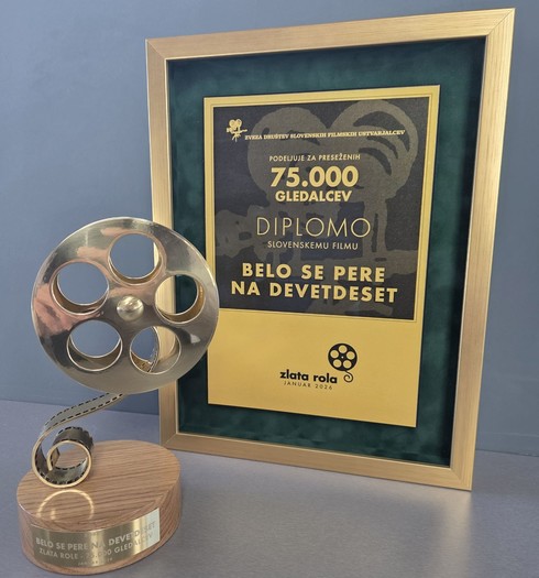10. 1. 2026 - V filmskem centru Odiseja smo v teh dneh podelili tretjo Zlato rolo f ilmu Belo se pere na devetdeset. Film si je v slovenskih kinih ogledalo že kar 80.000 gledalcev. Ob udeležbi ustvarjalcev filma in prijetni organizaciji Odiseje je tretjo Zlato rolo v imenu Zveze društev slovenskih filmskih ustvarjalcev podelil Alan Vitezič. Vsem ustvarjalcem iskreno čestitamo in se veselimo nadaljnjih uspehov filma. Zlata rola je prestižno priznanje, ki ga Zveza društev slovenskih f ilmskih ustvarjalcev podeljuje od leta 2002 za najbolj obiskane slovenske filme. Nagrada je ključni element pri promociji domače filmske produkcije ter njeni konkurenčnosti v slovenskih kinodvoranah. Podelitev Zlate role poudarja pomen sistematične podpore slovenskim filmom v domačem kulturnem prostoru, s čimer spodbuja večjo prepoznavnost in zanimanje za slovenske filmske ustvarjalce.