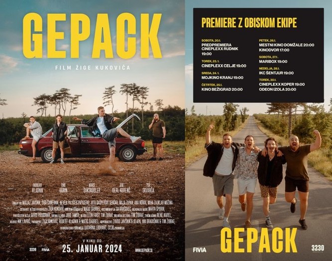 Ljubljana, 9. januar 2024 – V kinematografe prihaja GEPACK – celovečerni prvenec Žige Kukoviča, uveljavljenega ustvarjalca vsebin za družbena omrežja, ki zadnja leta prodira tudi v filmski svet. Gre za gverilski projekt, ki ga je v lastni režiji in ob popolni svobodi ustvarjanja posnel skupaj z ekipo mladih in zagnanih umetnikov. Cesta, očetov avto, štirje prijatelji in slepi potnik so elementi, ki jih v filmu prepleta Kukovič, ob tem pa spretno krmari med zabavnimi in napetimi prizori, ki bodo občinstvo nedvomno prikovali na sedeže. Pot po kinodvoranah domači 'road movie' pričenja s serijo premier, pri čemer je prva projekcija že razprodana. Tako so v predprodaji na voljo tudi vstopnice za redne predstave od 25. januarja dalje, do takrat pa za ogrevanje priporočamo ogled napovednika.