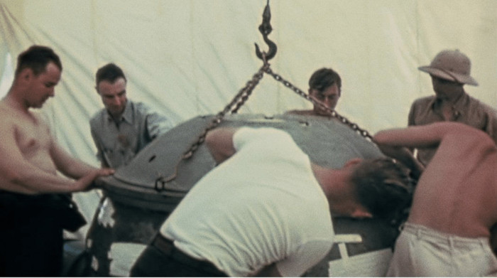 redke filme in slike, da bi čim bolj oživil takratno zgodbo; hkrati pa se osredotoča na človeški napor in pričevanja graditeljev bomb ter preživelih poskusov v Novi Mehiki in Hirošimi.