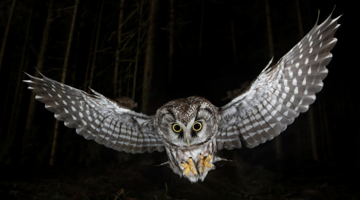 Prvenca režiserjev Clemensa Kecka in Toma Horaka razkrivata, kaj se ponoči dogaja v srednjeevropskem smrekovem gozdu. Spremljamo izjemne prilagoditve živali na temo in njihovo medsebojno povezanost: borealne sove, rumenovratke, črni detli in gozdne mravlje. Dokumentarec prikazuje, kako se ta bitja soočajo s prehodom od najdaljših do najkrajših noči v letu. Če se nam gozd ponoči zdi srhljiv, zanje predstavlja živahen in prepleten svet.