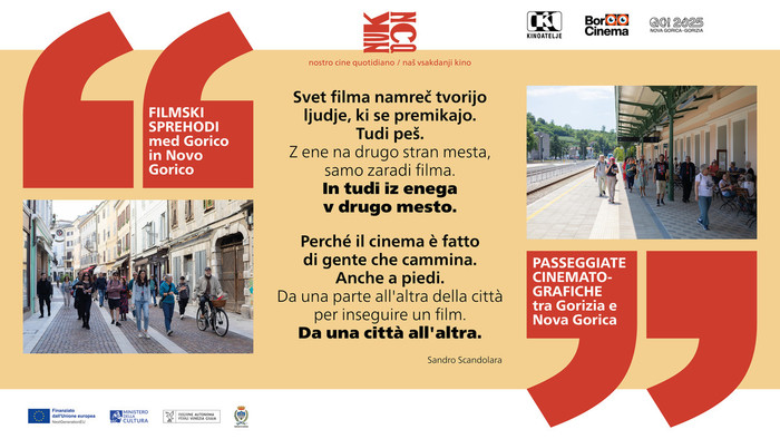 “Svet filma namreč tvorijo ljudje, ki se premikajo. Tudi peš. Z ene na drugo stran mesta, samo zaradi filma. In tudi iz enega v drugo mesto.” - Sandro Scandolara, Naš vsakdanji kino (prevod Janko Petrovec)