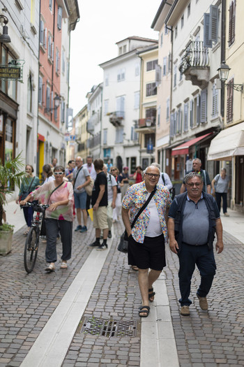 Vodena kolesarska tura bo v slovenščini potekala 28. in 29. julija ter 1. avgusta, v italijanščini pa 28. in 30. julija ter 2. avgusta. Začetna lokacija bo ob 18.30 iz prostorov BorGO Cinema na Raštelu 57, zaključek pa na Ploščadi Silvana Furlana v Novi Gorici ob 20.30. Tam bo 28. julija udeležence pričakala tudi zdravica ob predstavitvi tretjega filmskega sprehoda v okviru projekta Naš vsakdanji kino, ki ga finančno podpira ukrep PNRR Borghi.