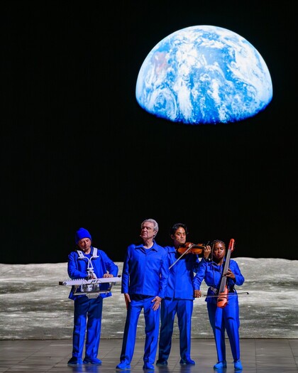 Na turneji “Who Is the Sky?” Davida Byrnea so LED zasloni in projekcije pomemben del vizualne izkušnje — celoten oder je obdan z velikimi LED zasloni in projekcijami, ki spremljajo glasbo in ples ter ustvarjajo skoraj filmske prizore. Med nastopi se na zaslonih pojavljajo privlačni vizualni motivi, barvne teksture in krajinski posnetki (npr. video posnetki našega modrega planeta ali mesta New York ter druge dinamične sekvence), ki se usklajujejo z ritmom in čustvi pesmi ter dodajajo dodatno plast pripovedi nastopa. Projekcije lahko vključujejo tudi imena glasbenikov, geometrijske vzorce ter barvne prehode, zaradi česar se občinstvu ustvari občutek, da je del večje, skoraj interaktivne gledališke predstave, ne le klasičnega koncerta.