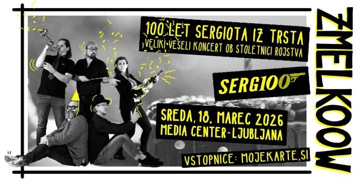 Zmelkoow ves čas mojstrsko krmarijo med (samo)ironično kritiko sodobnega sveta, eksistencialnimi vprašanji, glorifikacijo bizarnosti in norim veseljaštvom. In vse to počnejo na zelo svojstven, inteligenten, neponovljiv način in predvsem iskreno. Zmelkoow so nam dokazali, da se lahko uspeh doseže tudi brez prilagajanja komercialnim trendom, s poudarkom na izvirnosti in nekonvencionalnosti. In čeprav so izdali že 10 albumov, na vrata trka že enajsti, in so z nami že več kot 30 let, niso nikoli zares praznovali obletnice. Do letos. Ko bodo skupaj z nami praznovali Sergiotovo 100-tko in v sredo, 18. marca 2026, v Media Centru v Ljubljani v ta namen priredili Veliki veseli koncert ob stoletnici rojstva Sergiota iz Trsta. Vabljeni vsi fešte željni! Vstopnice so na voljo preko sistema Moje karte.