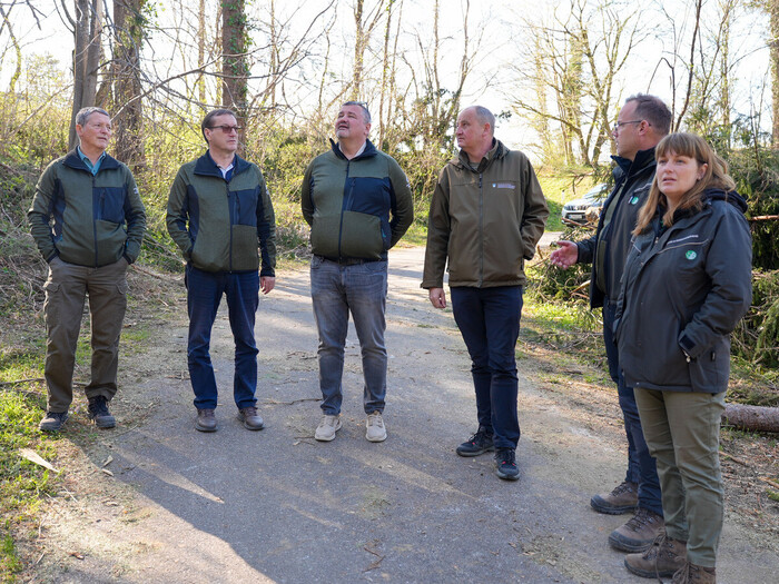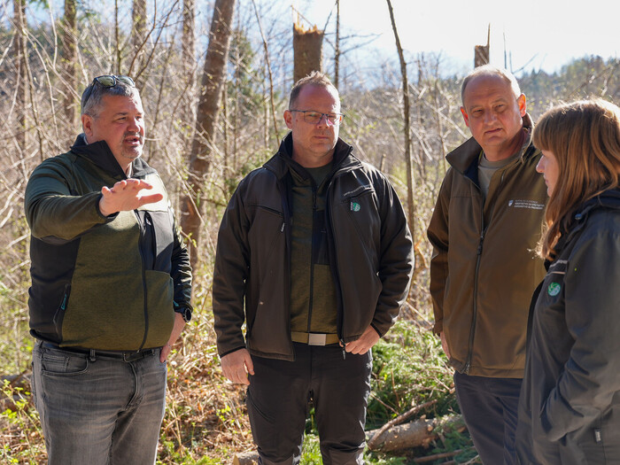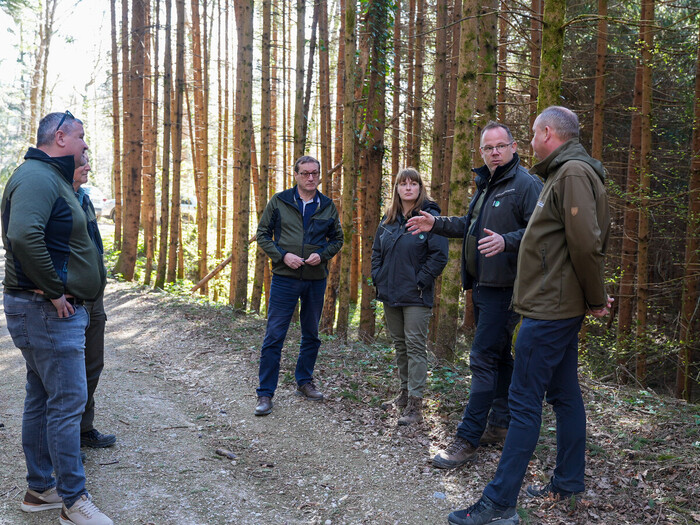 Letenice, 7. 4. 2026 – Predstavniki Zavoda za gozdove Slovenije (ZGS) so generalnemu direktorju Direktorata za gozdarstvo in lovstvo na Ministrstvu za kmetijstvo, gozdarstvo in prehrano Gregorju Metercu na terenu predstavili posledice nedavnega vetroloma na Gorenjskem in njegovo sanacijo. Obiskali so prizadeta območja na Letenicah in Goričah ter si ogledali odpravo posledic, ki že poteka. »Varnost mora biti vedno na prvem mestu, pa naj bo to izvajalca del, opreme, bližnje infrastrukture in nenazadnje obiskovalcev v gozdu. Lastniki naj se sanacije lotijo premišljeno in po potrebi ob pomoči usposobljenih izvajalcev, predvsem naj najprej posekajo in iz gozda odpeljejo poškodovane iglavce, v katerih se lahko prenamnožijo podlubniki,« je poudaril direktor ZGS Gregor Danev.