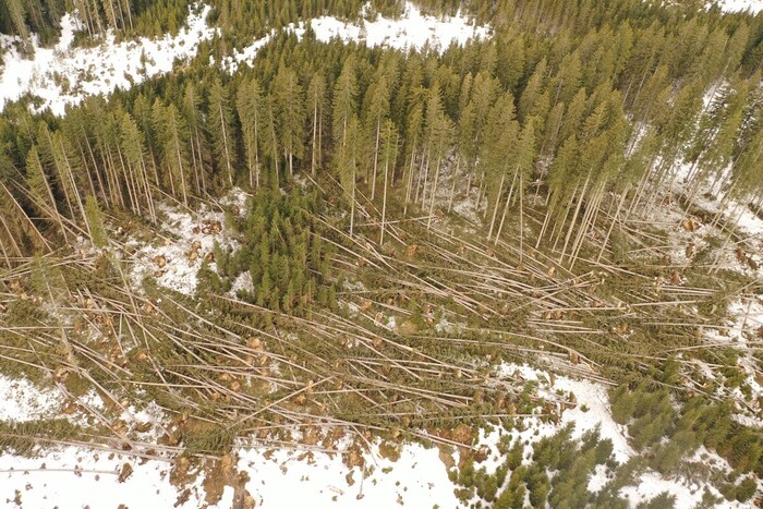 Ljubljana, 30. marec 2026 – Zavod za gozdove Slovenije (ZGS) po do zdaj zbranih podatkih s terena ocenjuje, da je nedavni vetrolom po Sloveniji poškodoval vsaj 200.000 m³ lesne mase, kar je še enkrat več od prvih ocen iz preteklega tedna. »Največ škode beležimo na gozdno gospodarskih območjih (GGO) Bled in Kranj, pa tudi na Pohorju, v delu jugovzhodne Slovenije ter ponekod v vzhodnem delu države,« je sporočil direktor ZGS Gregor Danev.