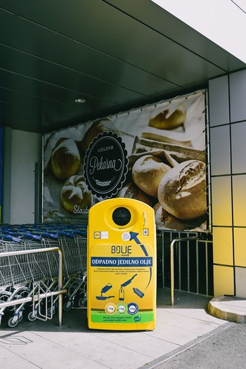 Zbiralniki za odpadno jedilno olje so postavljeni blizu vhoda Lidlovih trgovin, kar omogoča boljšo vidnost in dostopnost za njihove kupce in druge uporabnike, ki bi želeli oddati olje. Opremljeni so s piktogrami in navodili za pravilno odlaganje, hkrati pa so zasnovani tako, da omogočajo enostavno oddajo olja – s plastenko vred, s čimer se prepreči prelivanje olja in omeji možnost razlitja. V zbiralnik se lahko odložijo jedilno olje, maščobe, svinjska mast, margarina, maslo in olje iz