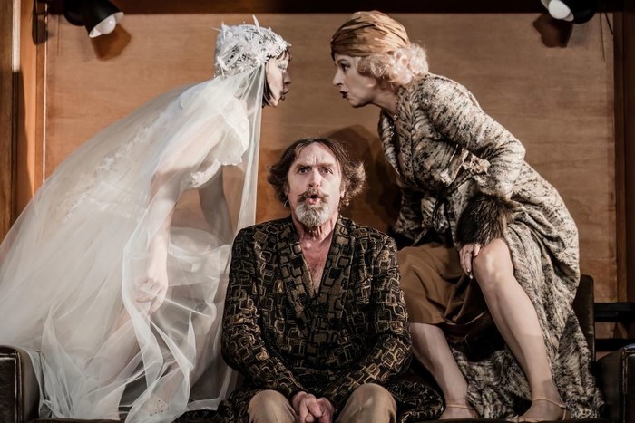 Nismo še zaključili dela. Besedilo je duhovito, liki niso niti karikature niti psihološko realistični modeli. Zdi se mi, da so nekako dvodimenzionalni, kot s kakšnega unikatnega, skrajno živega in privlačnega plakata. Plakata za cirkus, kabare in družinsko dramo obenem.