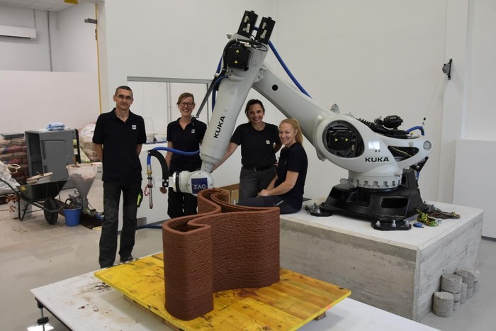 S 3D tiskom se pospešeno ukvarjamo na Zavodu za gradbeništvo Slovenije (ZAG), kjer imamo več tovrstnih naprav. Največjo izmed njih – Robotsko postajo za digitalno proizvodnjo – smo zagnali konec lanskega leta. Za koordinacijo aktivnosti na tem področju pa smo julija letos vzpostavili Vozlišče za digitalno proizvodnjo (DFHub) in dogodek obeležili s 3D tiskom kosa urbane opreme.