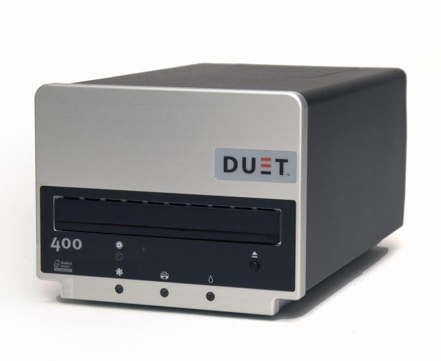 Zapisovalnik&tiskalnik omogoča zapisovanje na DVD/CD in sočasno tiskanje na zgoščenke, medtem ko se le-te še »vroče« vrtijo v pekaču. Duet 400 tako zagotavlja nezmotljivo povezanost med vsebino in oznako DVD-ja ali CD-ja, pri čemer je uporabniku prihranjeno veliko časa, saj zgoščenk ni potrebno ponovno vstavljati v pogon druge naprave. Preprosto peko omogoča laserski zapisovalnik, ki je nameščen pod DVD/CD nosilcem, potisk zgoščenk pa tiskalnik, ki je nameščen nad zgoščenko.