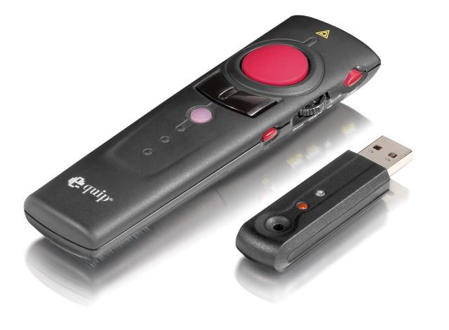 ob računalniku na katerem je predstavitev nameščena. Tako je izvedba predstavitve veliko bolj sproščena in dinamična, slušateljem pa vsekakor veliko zanimivejša. Samo napravo sestavljata daljinski krmilnik in USB 2.0 brezžično vodilo za osebne računalnike. Pri snovanju opreme je podjetje Equi poseben poudarek namenilo preprosti in uporabniku prijazni namestitvi in uporabi po eni strani, po drugi pa oblikovnim rešitvam in nizki porabi daljinskega upravljalnika. Ta združuje več vrst tipk in