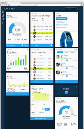Lastniki novega merilca aktivnosti vívofit, lahko spremljajo svoje športne cilje z novim Garmin Connect. Na strani dnevnega povzetka lahko na enem mestu vidijo svoj napredek: skupno število korakov, napredek glede na dnevni cilj, razčlenitev časa, ki ga preživijo aktivno v primerjavi s časom, ki ga preživijo sede, in še več. Novi Garmin Connect bo pomagal spremljati uporabnikovo telesno težo, porabljene kalorije in spanje, zaradi česar bo enostavneje najti in ohranjati zdrave navade. Edinstvena vívofit in novi Garmin Connect predstavljata izziv, ki temelji na številu korakov na teden, nastavljivem jeziku in časovnem pasu, ki omogoča globalno sodelovanje. To ustvarja prijateljsko tekmovanje in omogoča uporabnikom, da vidijo, kje se nahajajo v primerjavi z drugimi uporabniki vívofit.