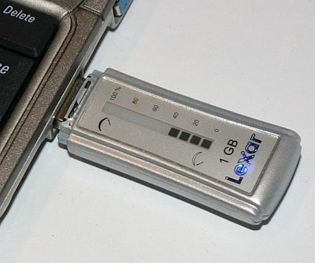 Gre za tanek in na zunanje vplive odporen zaslon, ki za svoje delovanje ne potrebuje električne energije (oziroma je potrebuje zanemarljivo malo), torej kapaciteto pomnilnika prikazuje ves čas, tudi ko le-ta ni priklopljen v računalnik. Prvi izdelek s to tehnologijo se imenuje Lexar JumpDrive®, predstavili pa so ga na sejmu Consumer Electronics Show (CES) 2006. »E Ink-ovi izdelki iz elektronskega papirja so nadvse tanki in za svoje delovanje potrebujejo izredno malo električne energije. Kot