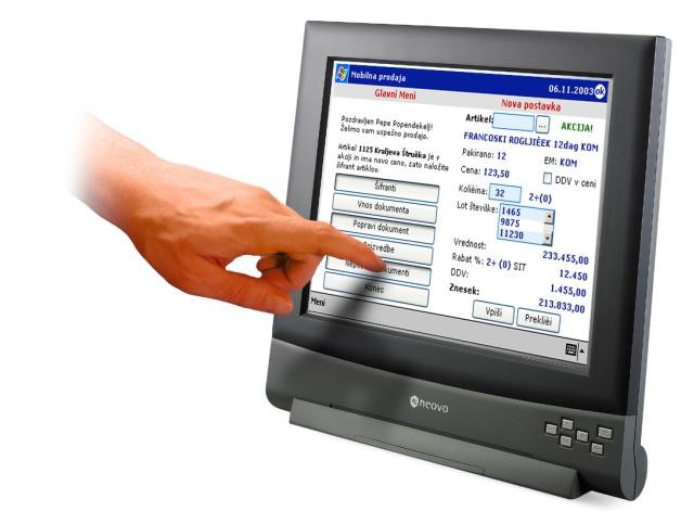 Serija Neovo TS združuje vse kvalitete monitorjev Neovo z inovativno tehnologijo zaznavanja dotika IntelliTouch. Monitor je zato primeren za uporabo v spletnih kioskih in na drugih javnih mestih, pa tudi v okoljih, kjer zaradi vplivov okolja ni moč uporaba klasične tipkovnice in miške. Tehnologija IntelliTouch deluje na osnovi zvočnega vala (SAW – Surface Acoustic Wave) in prek stekla pošilja ultrazvočne signale, ki omogočajo zaznavanje dotika brez premikajočih se delov. Taka izvedba zaznavanja