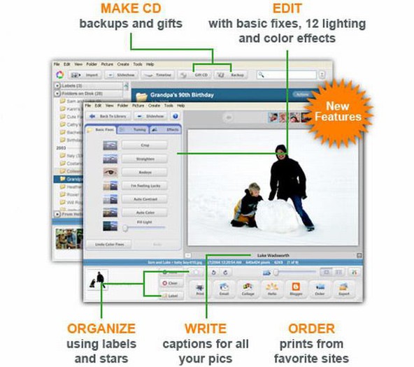 Picasa 2 samodejno odkriva digitalne fotografije, ki jih uporabnik pošlje prek e-pošte ali jih prenese z digitalnega fotoaparata, in jih shranjuje na enem mestu. Podpira iskanje po datumu ali dogodkih, uporabniki pa lahko fotografije tudi ocenjujejo. (aNET) http://www.picasa.com//"">Vec o tem...